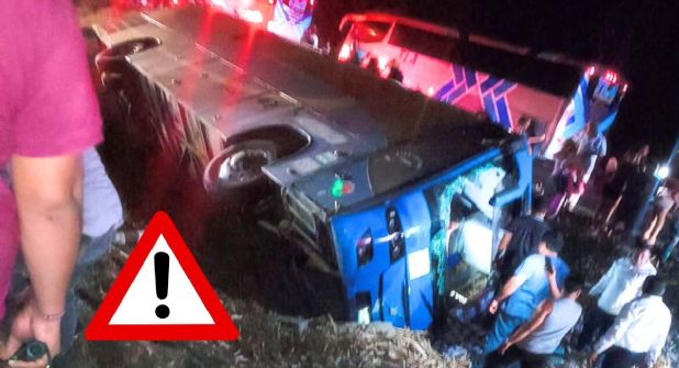 De las causas se logró saber que el chofer del autobús perdió el control de la unidad hasta volcarse, por presuntamente conducir en estado de velocidad alto.