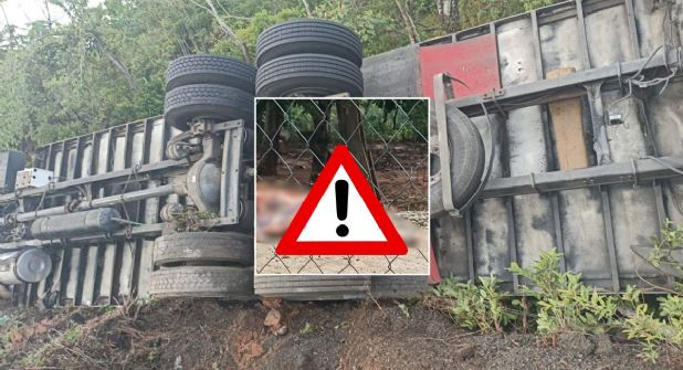 El accidente fue reportado después de las 9:00 horas a las autoridades, a la altura del kilómetro 60, en el municipio de Las Choapas. Las primeras investigaciones señalan que el chofer de la unidad pesada no logro evadir un vado que se encuentra en la carretera, por lo que perdió el control hasta salirse y volcarse hacia un costado.
