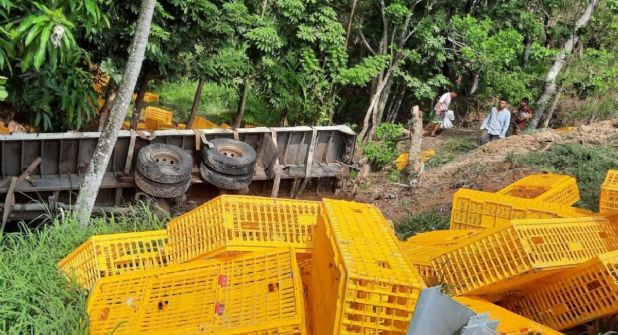Justo a la altura del kilómetro 77 de la utopista, la unidad se salió de la carretera hasta volcarse hacia un costado, por lo que la mayoría de las cajas de plástico donde se encontraban los pollos se regaron a un costado de la carretera. El conductor salió por cuenta propia de la unidad tras la volcadura y refirió que solo sufrió algunos golpes en el cuerpo y la cabeza, pero no lesiones mayores.