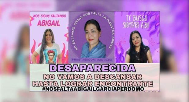 "Ayúdenme a encontrarla, es el GRITO de AUXILIO de toda una familia sufriendo, por la desaparición de su ser amado. Ayúdenme a encontrar a mi hermana, la privaron de su libertad, está desaparecida, el GRITO de AUXILIO, de toda una familia sufriendo NO TE QUITA NI UN MINUTO PARA COMPARTIR y ayudar a encontrar a ABIGAIL GARCÍA PERDOMO, tiene 43 años de edad, está desaparecida", se lee en una publicación de la página Hasta Encontrarte Abi, misma que familiares hicieron para difundir su caso.