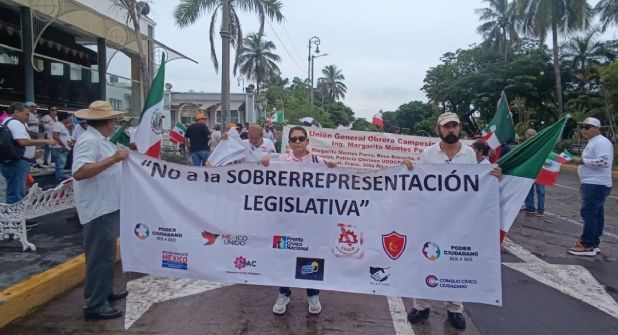VERACRUZ, VER.- En Veracruz, personas de la sociedad civil realizaron una marcha contra la sobrerrepresentación legislativa, ante la posibilidad de que el partido Movimiento de Regeneración Nacional (Morena) tenga mayoría en la Cámara de Diputados y el Senado de la República para la próxima legislatura, por lo que exigen al Instituto Nacional de Electoral (INE) tener cuidado sobre la designación de candidaturas plurinominales.