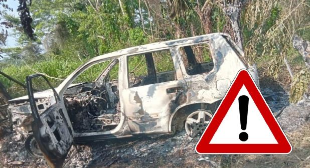 XALAPA, VER.- El cuerpo de una persona fue calcinada al interior de una camioneta en un camino rural del sur de Veracruz. El vehículo y los restos quemados fueron abandonados y localizados la mañana de este domingo 25 de agosto, generando una intensa movilización policiaca.