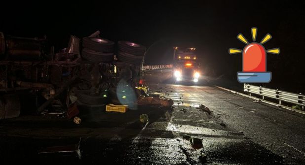 MALTRATA, VER.- La madrugada de este domingo 04 de agosto, se registró un fuerte accidente en la autopista Orizaba - Puebla, a la altura de las Cumbres de Maltrata, donde se vio involucrado un tráiler que iba cargado con verduras. El vehículo de carga volcó sin que se registraran personas lesionadas de gravedad.