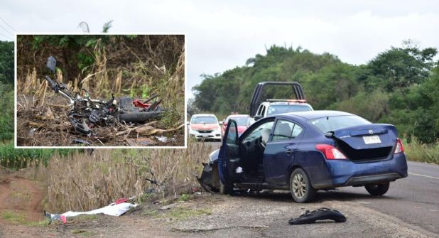 OLUTA, VER.- Un elemento de la Policía Municipal de Villa Oluta, murió este martes 14 de enero tras ser impactado por un automóvil particular al momento en que circulaba a bordo de su motocicleta sobre la carretera Costera del Golfo, al sur del estado de Veracruz. Un segundo elemento que viajaba en la parte trasera de la misma unidad, es reportado como grave.