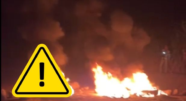 Por medio de un video en redes sociales se observa cómo mantienen la carretera bloqueada con al menos tres llantas prendidas en llamas. A continuación puedes ver el video.