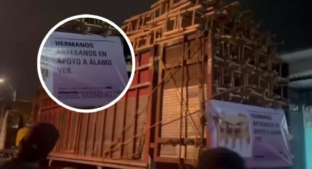 De acuerdo con lo difundido en las redes sociales y la lona que cubría una parte del tráiler, estos comedores de madera fueron donados por artesanos y comerciantes de los municipios de Soledad Atzompa, Nogales y Camerino Z. Mendoza, todos de las Altas Montañas del estado.