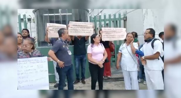 “Queremos efectivo, no queremos vales”, gritan los manifestantes y se leen en las cartulinas que portan afuera del hospital, ubicado en la avenida Zaragoza, en el Centro de la ciudad.