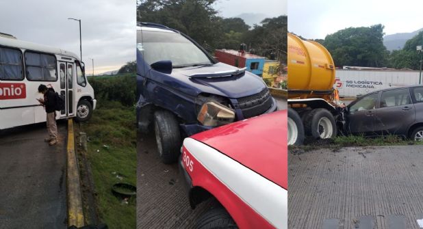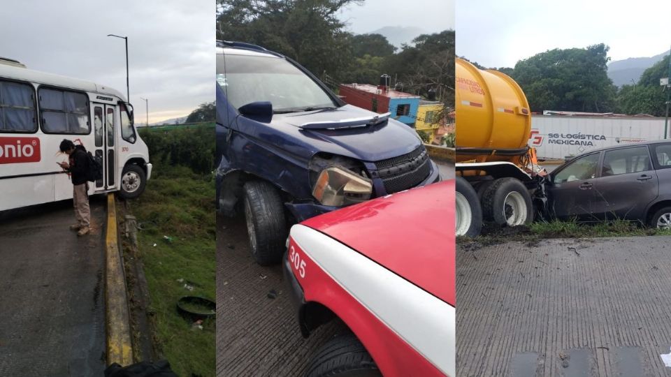 En el percance se vio involucrada una unidad de carga tipo Torton que tiene acoplado un autotanque, un autobús de transporte de personal de la empresa San Antonio, el cual llevaba a personal de dicha empresa y otro autobús de la empresa Pollos Neria, un taxi del municipio de Fortín con número 305 y dos vehículos particulares, de los cuales, uno se impactó contra el taxi y otro contra la unidad de carga tipo Torton.