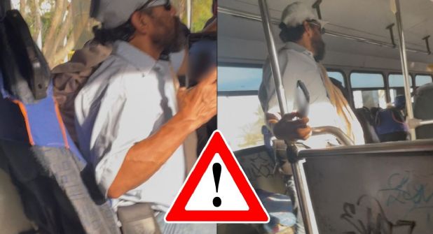 "Tenga mucho cuidado con este señor pervertido asquereso. Mi compañera y yo fuimos víctimas de este sujeto, para andarnos enseñando sus videos asquerosos en el camión. Ahí se puede apreciar como el señor nos está enseñando esos videos"