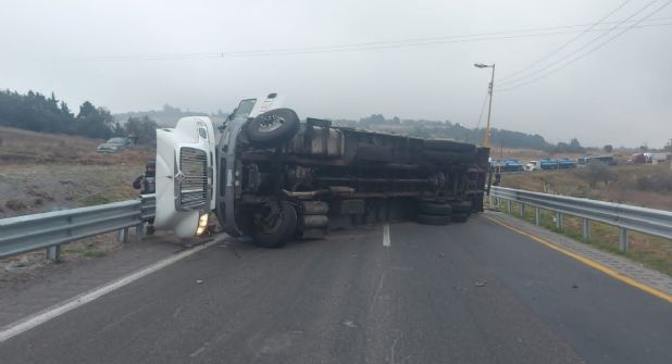 El accidente ocurrió esta mañana sobre la autopista Orizaba - Puebla, en dirección a Puebla, específicamente a la altura del kilómetro 224, en el tramo de San José Cuyachapa, Puebla. El conductor de un Torton perdió el control de su unidad, lo que provocó que volcara.