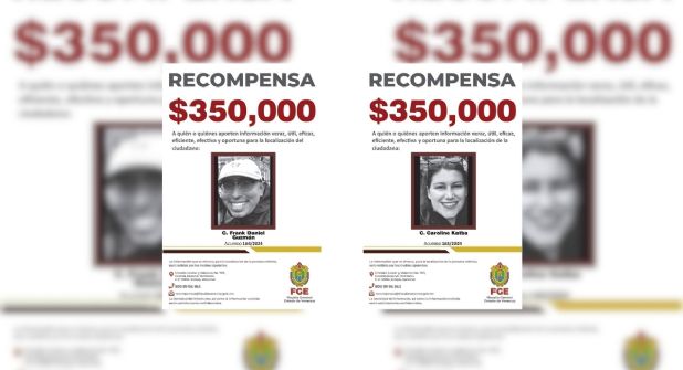 COATZACOALCOS, VER. - La Fiscalía General del Estado (FGE) de Veracruz dio a conocer que otorgará un recompensa de hasta 700 mil pesos, a quien ofrezca información fidedigna que ayude a la localización de Caroline y Frank, pareja estadounidense que, presuntamente desapareció en Coatzacoalcos, desde julio del 2024.
