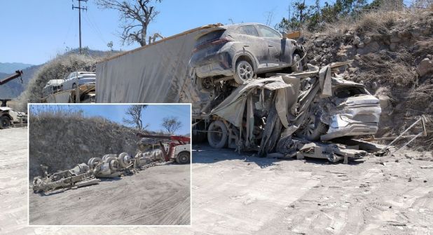 El Tráiler un Kenworth Kenmex color blanco con razón social Transportes del Sur Jiret, el cual iba cargado con cemento y presuntamente con más de 30 toneladas, además del Tráiler doble remolque de vehículos de los llamados nodriza, algunos de los vehículos resultaron dañados por este hecho. En tanto el cemento quedó esparcido por más de 200 metros de la carpeta asfáltica.