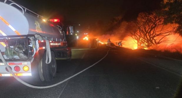 Elementos de Protección Civil, bomberos y Guardia Nacional se encuentran en el lugar para controlar la situación y sofocar el fuego, que aún no ha sido completamente extinguido.