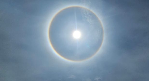 VERACRUZ, VER.- Este sábado 24 de mayo, un halo solar fue visible al mediodía en diversas zonas del estado de Veracruz, incluyendo municipios como Xalapa, Córdoba y Zongolica. El fenómeno también se reportó en la Ciudad de México.