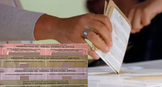 El “acordeón” identifica a los postulantes por el color de boletas que van a entregar el OPLE el día de la jornada electoral, e incluye los números de candidatos que compiten por magistraturas del Tribunal de Conciliación y Arbitraje; para el Tribunal de Disciplina Judicial y Juezas y Jueces de Primera Instancia para renovar el Poder Judicial.