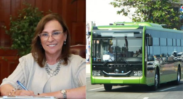 "Después de todo un procedimiento de análisis, pruebas, creación del fideicomiso y proceso financiero, hoy firmamos con la empresa Yutong la compra de 102 camiones urbanos híbridos para lo que será el servicio de transporte público ULÚA, para la zona de Veracruz- Boca del Río", escribió en Facebook la gobernadora.
