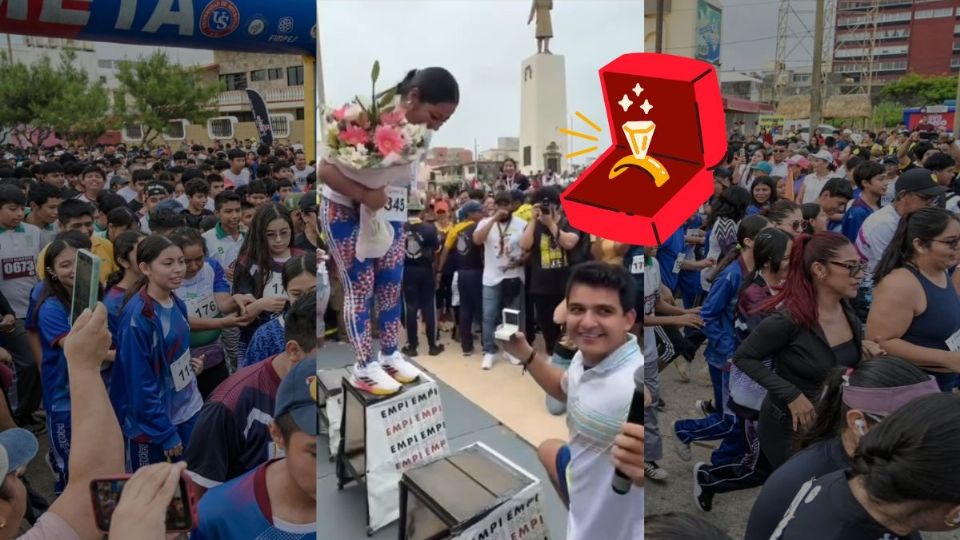 Los protagonistas de esta escena romántica, son una joven originaria de Coatzacoalcos y un joven que viajó desde Xalapa para declarar su amor. La carrera comenzó en punto de las siete horas, y dependiendo las categorías se fueron premiando a los ganadores. La joven de nombre Sama, recibió la medalla del primer lugar, y de la nada apareció su novio con un arreglo de flores para expresarle las siguientes palabras: