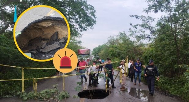 "El gobierno municipal a través de la dirección de Protección Civil, activa con celeridad el protocolo de seguridad, con el acordonamiento para prevenir mayor riesgo para conductores que transitan sobre la carretera federal en su tramo de Tantoyuca a San Sebastián, ante severo socavón en la vía de comunicación. Piden a los choferes, en general, tomar medidas preventivas al transitar por este tramo de la carretera federal", informó el Ayuntamiento.