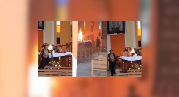 XALAPA. VER.- Un hombre en presunto estado inconveniente prendió fuego al altar de la iglesia "Nuestra Señora de Guadalupe" en la localidad de Tilapan, perteneciente al municipio de San Andrés Tuxtla, en el sur de Veracruz, la tarde del jueves 21 de agosto. El hecho quedó grabado por pobladores y fue difundido a través de las redes sociales.
