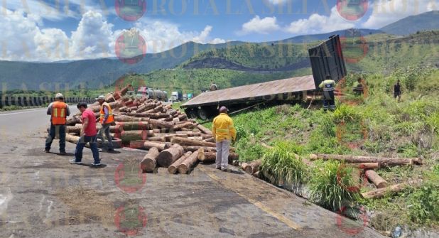 NOGALES, VER.- La mañana de este viernes 22 de agosto se registró un aparatoso accidente sobre la autopista Orizaba-Puebla, a la altura del kilómetro 255 con dirección a Puebla. Un tractocamión que transportaba una plataforma cargada con troncos de madera volcó, lo que ocasionó afectaciones en la circulación.