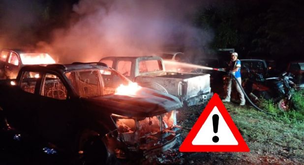 ACAYUCAN, VER. – La madrugada de este domingo 24 de agosto, presuntos delincuentes habrían provocado el incendio de un corralón de autos, perteneciente a la empresa “Grúas MG”, en el municipio de Acayucan, al sur del estado de Veracruz. El saldo fue de 27 unidades calcinadas, y a pesar del operativo implementado por las autoridades, no se logró la detención de los responsables. Este es el tercer ataque contra el establecimiento en menos de 12 meses.