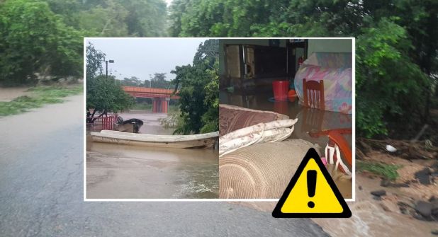 En Hidalgotitlán, piden tomar precauciones a los habitantes de la zona rural debido al cierre del paso vehicular en el camino La Esperanza - Coapoliliya. Se desbordó el río Coatzacoalcos y cubre una parte del camino.
