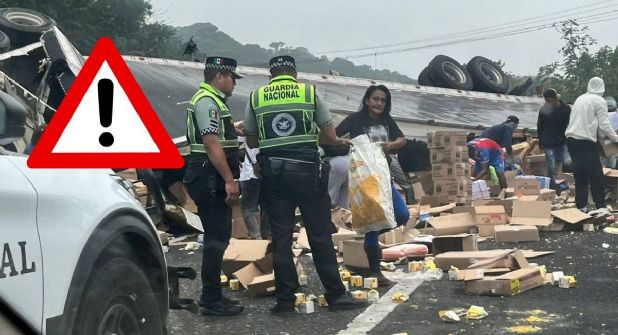 En cuestión de minutos, la zona se volvió un caos, ya que decenas de pobladores de comunidades cercanas acudieron, no para ayudar al conductor de la unidad, sino para sustraer la mercancía del vehículo siniestrado.