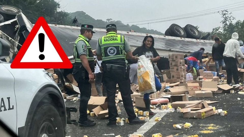 COATZACOALCOS, VER. - Pobladores del sur Veracruz, protagonizaron actos de rapiña, la mañana de este miércoles 28 de enero, luego de que un tráiler que transportaba productos lácteos y carnes frías, se volcó al momento en que transitaba sobre la carretera Coatzacoalcos-Villahermosa, a la altura del municipio de Agua Dulce.