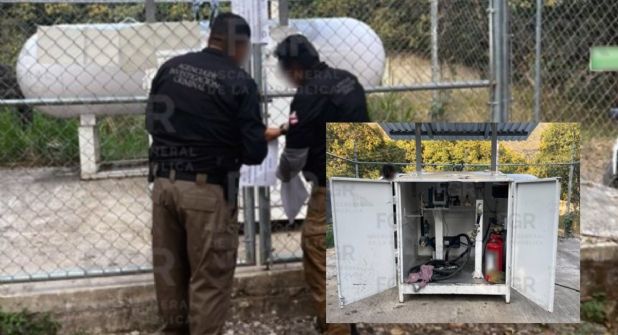Durante el cateo, las autoridades aseguraron un tanque estacionario con aproximadamente 2 mil 700 litros de gas LP, una manguera despachadora de presión, tres mangueras de alta presión, dos extintores, un panel de control digital conectado a una impresora, así como una caseta de operación.
