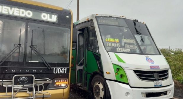 La unidad Quetzalli se estaba incorporando hacia la avenida principal, y golpeó por un costado al urbano de la ruta Olmeca-Centro; los daños solo fueron materiales.