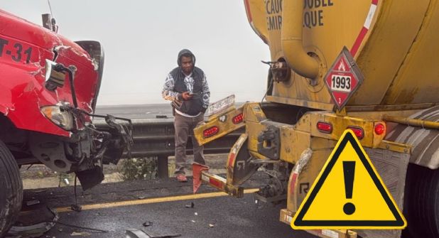 Fue un Tractocamión Kenworth color azul de que remolcaba dos auto tanques de la empresa Transportes Bueno, el presunto exceso de velocidad al cual era conducida la unidad, provocó que al llegar a la curva de la Laguna de Nogales tuvo que frenar de manera repentina ante la carga vehícular por labores de mantenimiento.