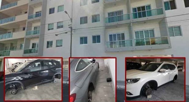 Sujetos ingresaron a un edificio de condominios ubicado en el fraccionamiento Costa de Oro, en la ciudad de Boca del Río, para robar las llantas y rines de al menos cuatro automóviles de lujo.