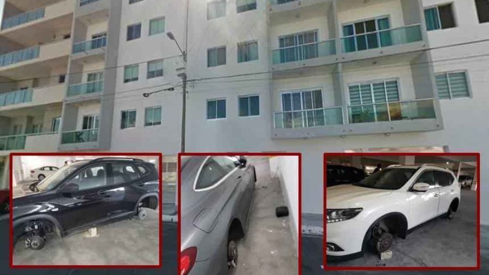 De acuerdo con lo narrado por vecinos, uno de los inquilinos se percató de los ruidos y al bajar para saber qué ocurría se encontró con hombres que retiraban las llantas de los automóviles.
