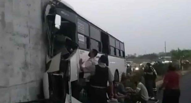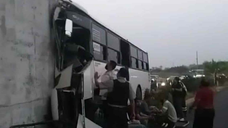 Un fuerte accidente ocurrió durante la mañana del miércoles 13 de octubre, sobre la carretera federal Veracruz – Xalapa, justo debajo del distribuidor vial de la cabeza olmeca en la ciudad de Veracruz, donde un autobús de transporte chocó contra un pilar de concreto.