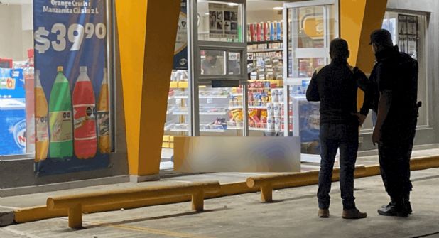 Uno de los atacantes le quitó la camisa del uniforme a una de las trabajadoras para hacerse pasar por empleado y pasar desapercibido frente a los clientes que pudieran ingresar, sin embargo, alguien pudo solicitar el auxilio al 911.