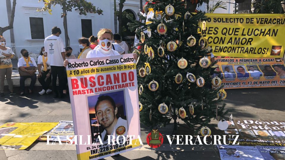 Este jueves 24 de diciembre, las madres del Colectivo Solecito colocaron “el árbol del dolor” en el zócalo de Veracruz en memora de sus familiares desaparecidos.