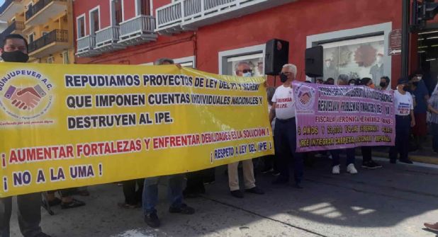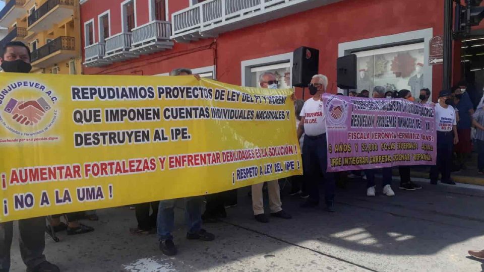 Integrantes del Consejo de Jubilados y Pensionados de Veracruz, se manifestaron en el centro de la ciudad, contra la propuesta de reforma legislativa en materia de pensiones que diputados de Morena propusieron y con la cual aseguran, pretenden destruir al Instituto de Pensiones del Estado (IPE).