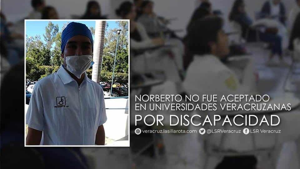 Hace cuatro años a Norberto le negaron la entrada a las universidades públicas a las que aplicó en Veracruz, las principales excusas fueron que no había programas y maestros capacitados para enseñarle a una persona invidente.