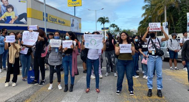 “Sí, la UV no saca a los agresores cómo nos vamos a sentir seguras de denunciarlos”, expresó la alumna Fernanda Torres durante la manifestación.