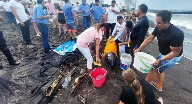 Un delfín fue descubierto varado en playas del municipio de Alvarado, en la zona conocida como la Riviera Veracruzana, por lo que ciudadanos y ambientalistas socorrieron al mamífero para evitar que muriera, durante la tarde de este jueves 13 de octubre.