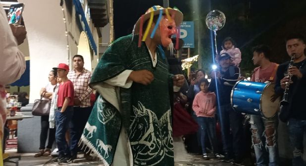 “Una limosna para este pobre viejo / una limosna para este pobre viejo / que ha dejado hijos… que ha dejado hijos… / para el año nuevo… / para el año nuevo…”, se escucha mientras una persona disfrazada con un sarape, sombrero y máscara de anciano baila entre la multitud a cambio de unas monedas.