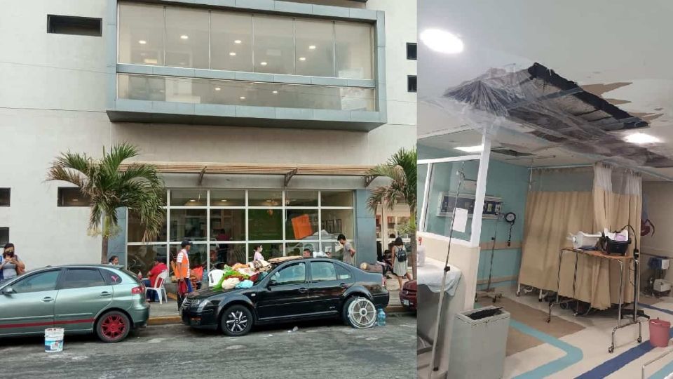 A través de redes sociales circularon algunas fotografías en las que se observa que los techos de algunos pisos de la Torre Pediátrica se encuentran dañados y sólo fueron cubiertos con plásticos.