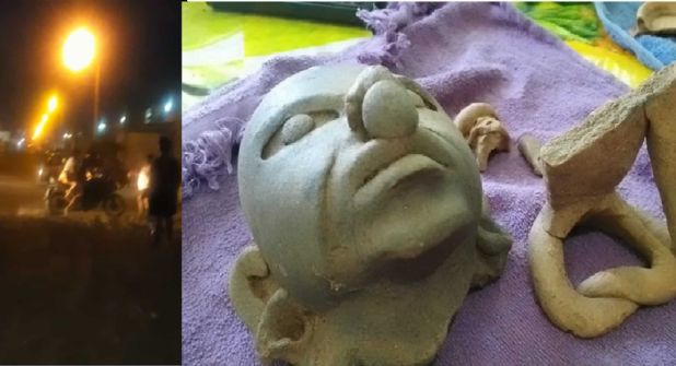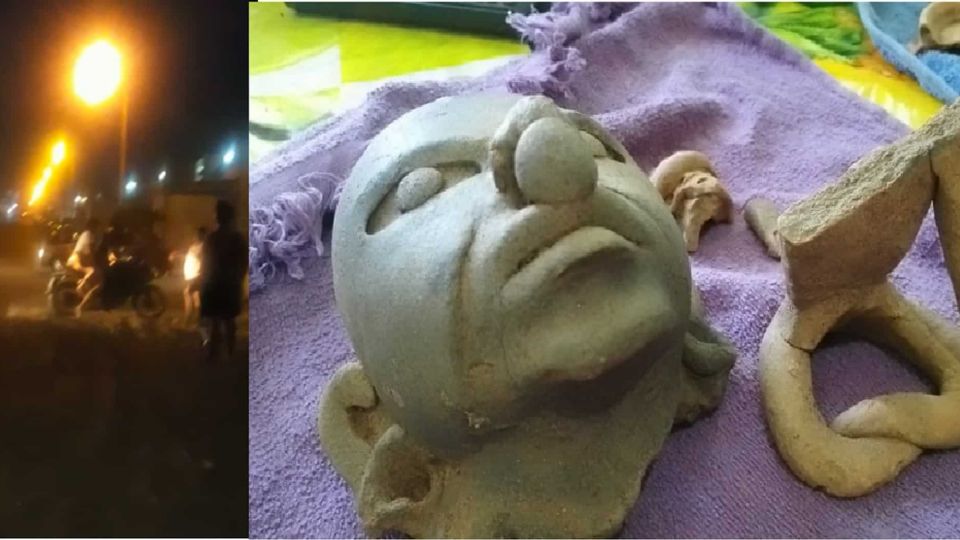 Entre las figuras antiguas encontradas hay cabezas de barro, vasijas y fragmentos de esculturas humanas.