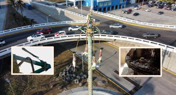 El monumento de los Voladores de Papantla no será reinstalado en la glorieta del paso a desnivel del bulevar Adolfo Ruiz Cortines de la ciudad de Boca del Río, debido a que los daños que presenta por el desgaste hacen elevado el costo para reponerla.