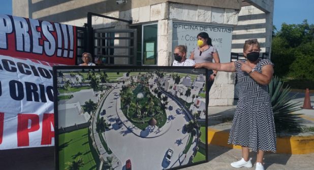 “Servicios básicos deplorables, total falta de compromiso de la constructora AFS, para la entrega del fraccionamiento, según el proyecto original”, se podía leer en una de las lonas que cerraba el paso.