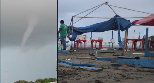 Una fuerte tromba sorprendió a jarochos que se encontraban cerca de la zona costera de la ciudad de Veracruz y Boca del Río, debido a que los fuertes vientos alcanzaron la zona de palapas de la playa Villa del Mar y causó estragos.