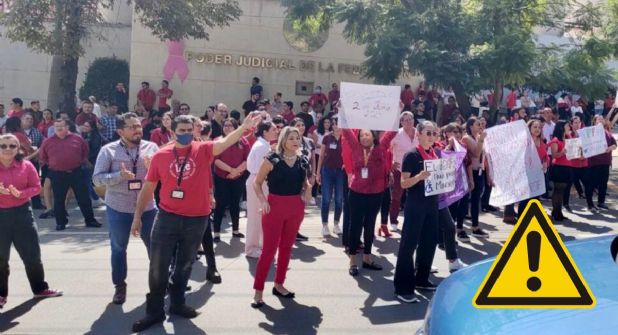 La manifestación inició alrededor de las 10 de la mañana, cuando los y las trabajadoras salieron de las oficinas del PJF, ubicadas en la avenida Arco Sur, cerca de la Fiscalía General del Estado (FGE), salieron a la calle.