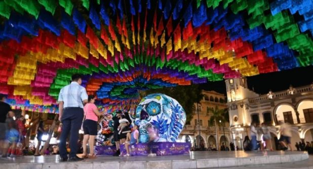 La celebración de Día de Muertos es una de las más importantes en México y en el estado de Veracruz. Durante esta semana el zócalo de la ciudad se llenó de papel picado de distintos colores y dos grandes esculturas de calaveras, las cuales llamaron la atención de los visitantes y ciudadanos, quienes no desaprovecharon la oportunidad de tomarse fotos.
