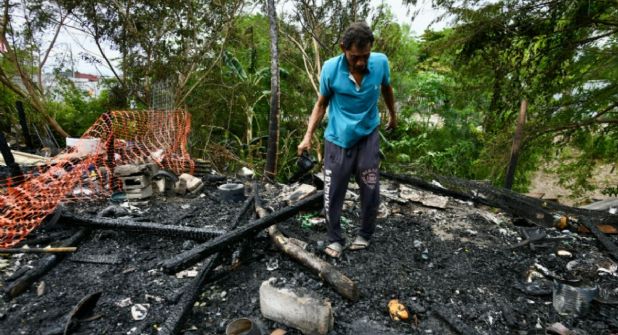 El hombre lo perdió todo. Entre los escombros y cenizas buscaba cualquier cosa que todavía le pueda servir, platica que esta noche dormirá sin un techo sobre su cabeza porque se quedó sin nada y no tiene familia que lo pueda recibir luego de que perdió su casa en el incendio.