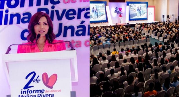 BOCA DEL RÍO, VER.- Este martes, Melina Rivera de Unánue; presidenta del DIF municipal de Boca del Río, rindió su Segundo Informe de Labores acompañada de su esposo, el alcalde Juan Manuel Unánue Abascal, así como por familiares, funcionarios municipales, legisladores, amigos y público en general.